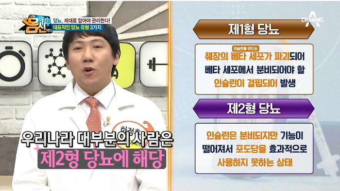 마른 당뇨란 - 한국형 당뇨라 불리며 우리나라에서 과반수를 차지하고 있는 당뇨 유형이다. 내장지방이 과도하면 우리의 몸은 에너지를 사용할 때 효율이 좋은 지방산을 먼저 이용하여 남은 포도당들이 쌓여 혈당이 높아지게 된다. 이렇게 포도당 사용률이 떨어지고 결국 인슐린 기능 저하를 불러오게 되고 혈당 조절 능력이 줄어 당뇨병이 유발된다.