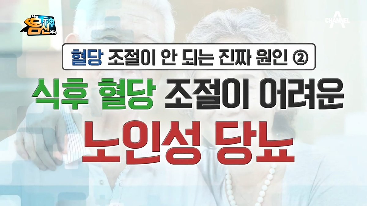노인성 당뇨란 - 주로 60세 이상에게 발생하는 당뇨로, 식후 혈당 장애가 있는 경우를 말한다. 당뇨병에 내성이 생겼다고 하여 '내당증 장애'라고도 한다. 내당증 장애는 인슐린의 도움을 통해 포도당을 여러 세포로 전달하는 것에 문제가 생기는 것을 말하며 이로 인해 식사 후 혈당이 정상 범위를 벗어나게 된다. 췌장이 노화되면 인슐린 분비 기능 저하, 혈액 내 포도당 흡수할 인슐린 부족 식후 혈당 장애로 이어진다. 공복에는 '간'이 혈당을 조절하고 식후에는 '근육'이 혈당을 조절하는데 근육이 부족하면 식후 혈당 조절에 문제가 생긴다.