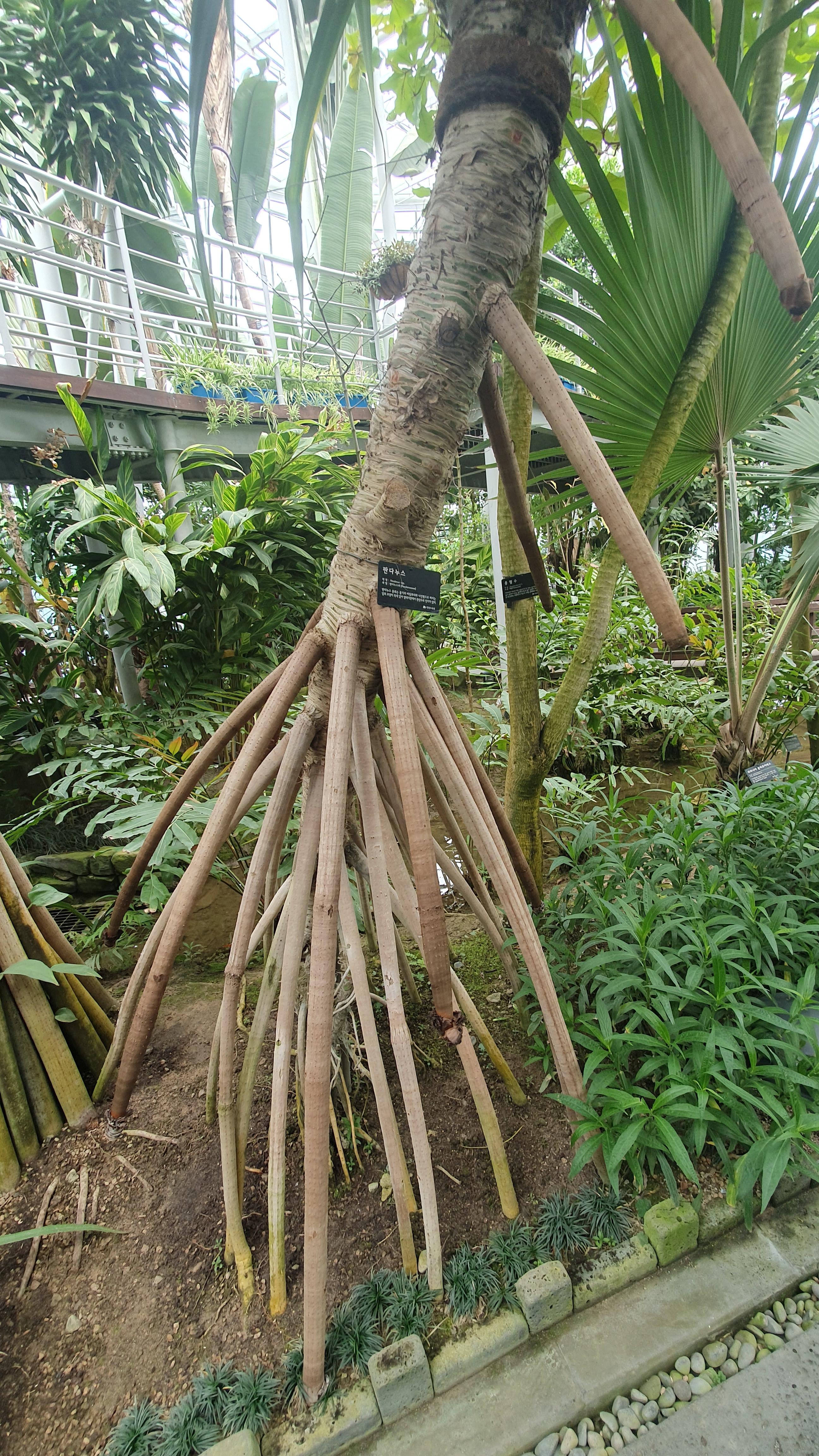 뿌리가 바깥으로 나와있는 독특한 식물 판다누스는 열대식물로 일본령 오가사와라 제도의 특산물이며 자웅 이주로 암나무의 가지 끝에서 길이 약 20cm가량의 파인애플 모양의 열매가 달리는데 열매는 익혀서 식용하며 목재는 가옥의 건축자재로 사용하고 잎은 모자, 매트, 배 구니 등을 짜는 재료로 쓴다고 한다. 알고 보니 버릴 것이 없는 나무다.