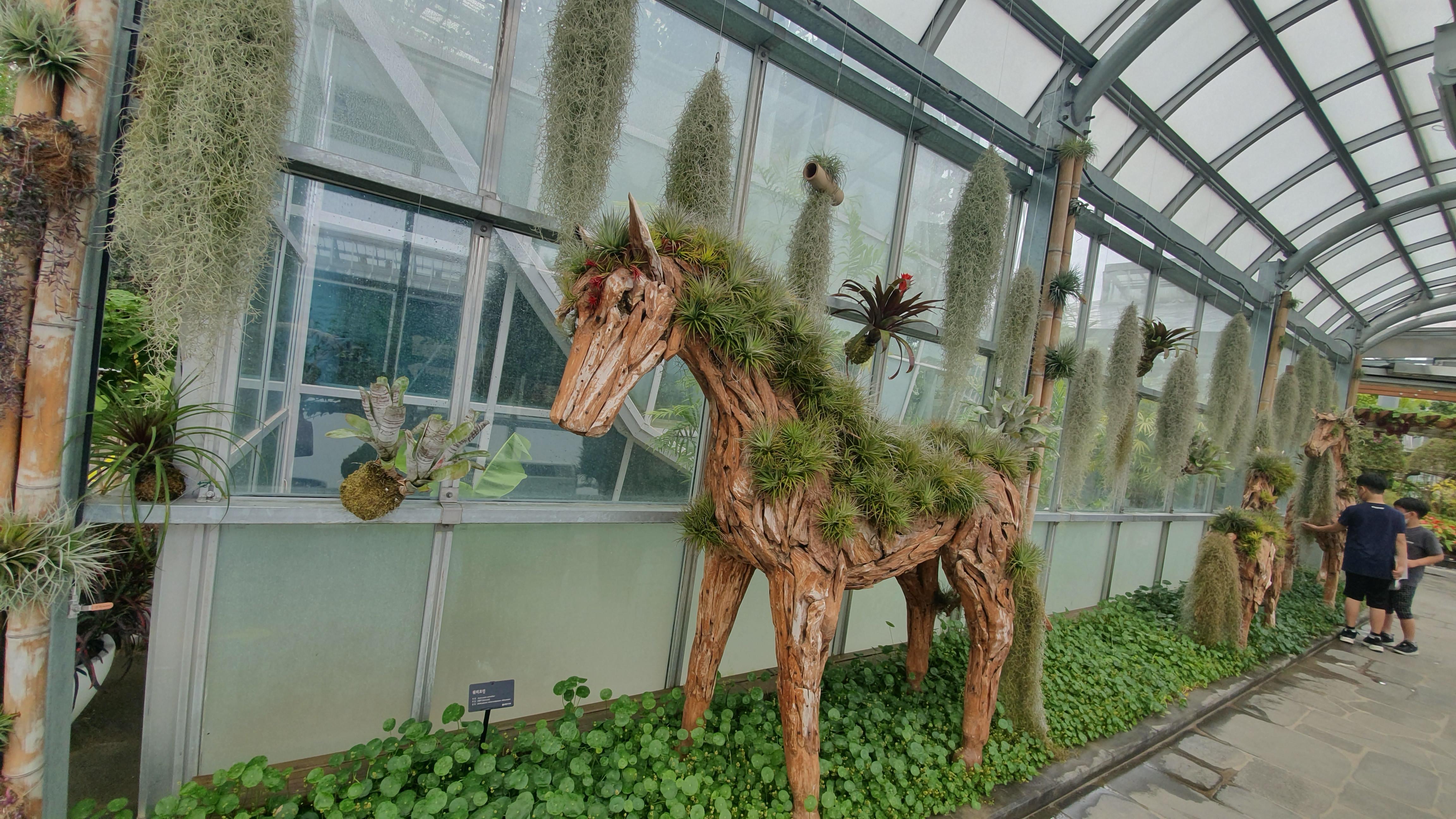 식물원 통로에는 말 모양으로 만들어놓은 말 조형물들이 세워져있다. 그리고 나무 조각 틈새 사이사이에 다육식물이 심어져 있다. 저렇게 꽃아 만 두어도 자라는 모습이 꽤나 신기하다. 꼬리 부분 역시 길게 늘어지는 식물을 심어두어 길게 꼬리를 표현했다. 아이들의 창의력과 상상력이 솟아날 것 같은 조형물이다.
