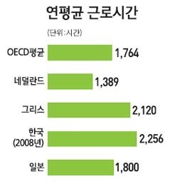 - 우리나라 노동자의 평균 근로시간이 다른 선진국(경제협력개발기구(OECD))에 비해 많다.