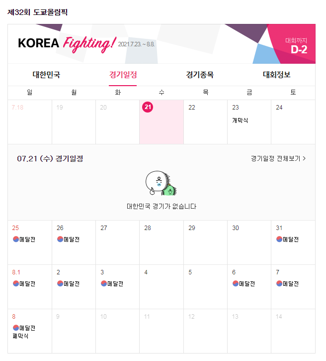 두번째 경기일정(대한민국vs루마니아) - 7월 25일 일요일 오후8시
