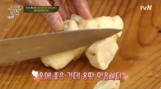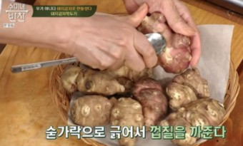 1. 돼지감자는 껍질을 벗길필요없이 씻은 후 울퉁불퉁한 끄트머리 부분만 먹기 좋게 잘라 손질한다.