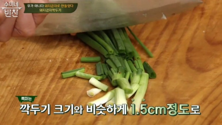 1. 쪽파 5 뿌리를 1.5cm 길이로 썰어준다.