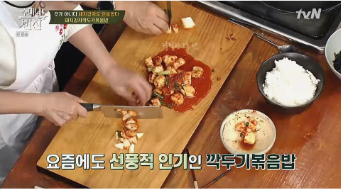 돼지감자 깍두기 볶음밥 레시피 - 잘게 다진 돼지감자 깍두기와 김칫국물, 밥을 넣고 볶다가 참기름 1큰술, 김가루 한주먹, 통깨 한 꼬집을 넣어 마무리한다.