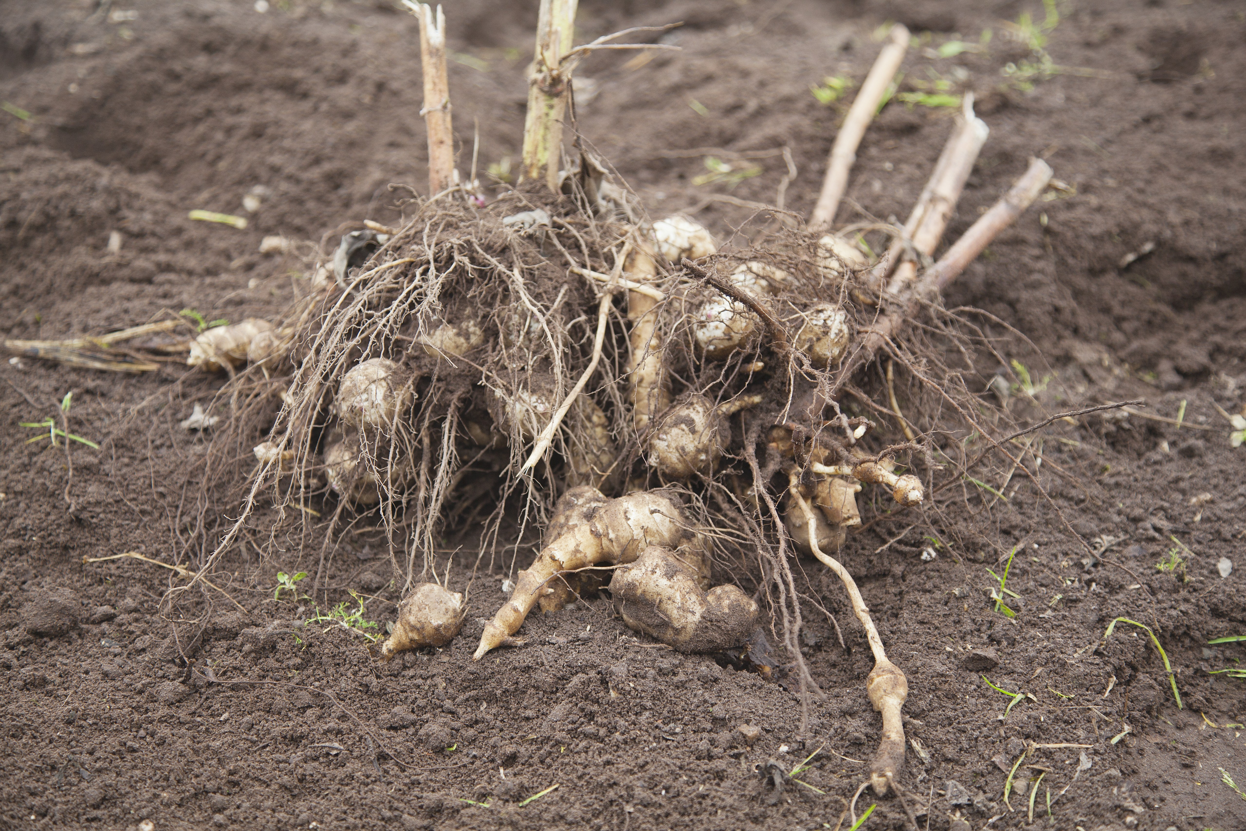 수확 시 큰 덩이줄기만 수확하고 작은것은 그대로 두면 봄에 싹이 돋으면서 같은자리에서 해마다 계속 자라난다. 수확 시기는 서리가 내리고 잎이 마르며 줄기가 앙상해질 때가 수확시기이므로 이듬해 봄, 새로 싹이 나기 전까지 수확할 수 있다.