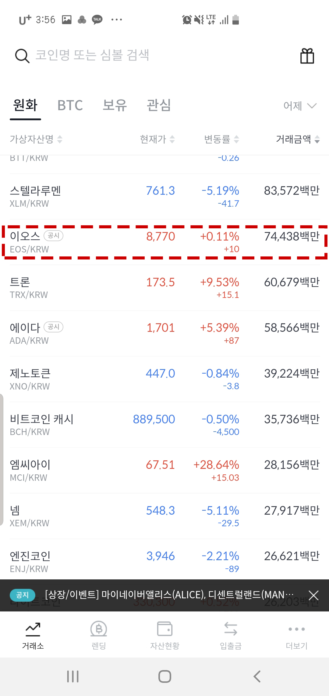 종목들을 전체적으로 살펴본 뒤 원하는 종목을 선택한다.