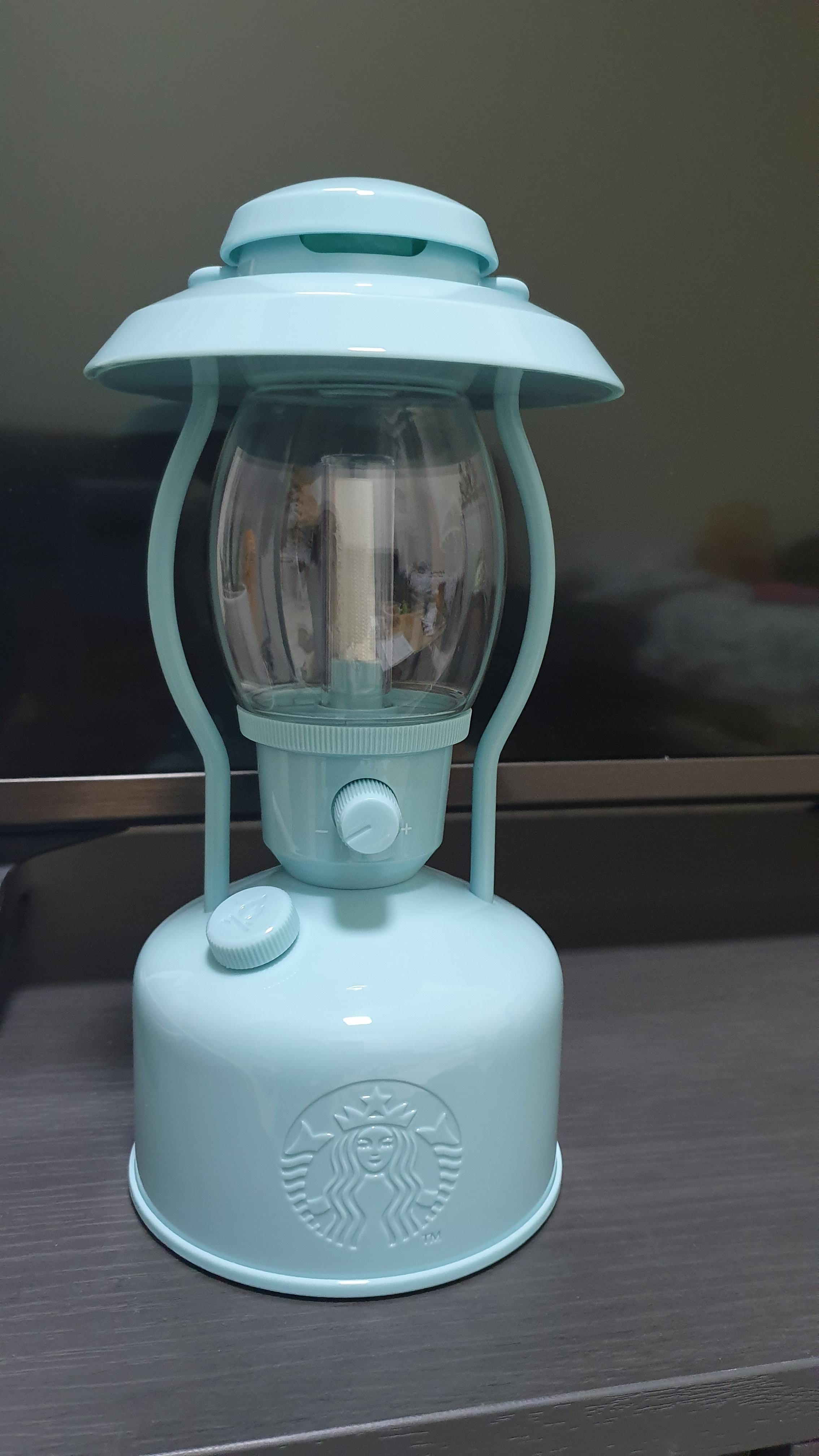 오늘은 스타벅스 e프리퀀시 제품인 서머 나이트 싱잉 랜턴 제품 사용 후기를 적어보려 한다. 랜턴의 높이는 23.5cm, 벌이는 12cm 정도이며 블루투스 기능, 불멍 효과를 주는 무드 조명 효과가 있다. 색상은 핑크, 민트, 블랙이 있는데 민트 색상이 끌려서 민트로 선택했다. 실제로 제품을 받아보니 너무 예쁜 파스텔 민트 색상이었다.