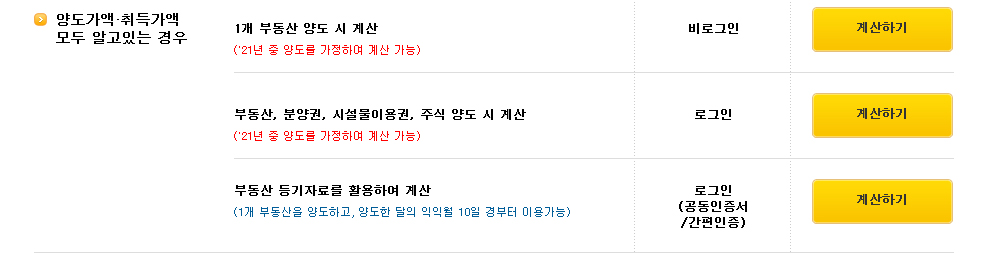 2. '양도 소득세 미리 계산'을 클릭한다.