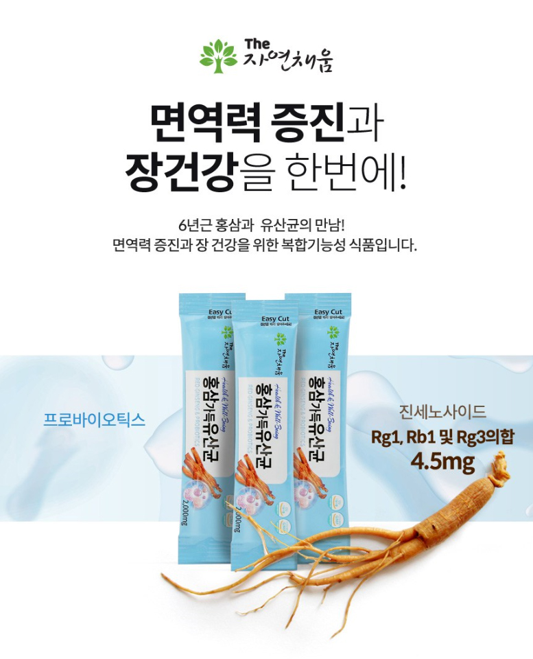 지금 혹시 일반적인 프로바이오틱스를 먹는 중이라면 면역력도 함께 높일 수 있는 홍삼이 함유된 프로바이오틱스를 섭취하는 것을 권장한다. 길어진 코로나 19로 활동량도 적어지고 면역력이 걱정되는 당신에게 장 건강과 면역력 둘 다 충족시켜줄 유산균이 될 것이니 바로 주문하자.