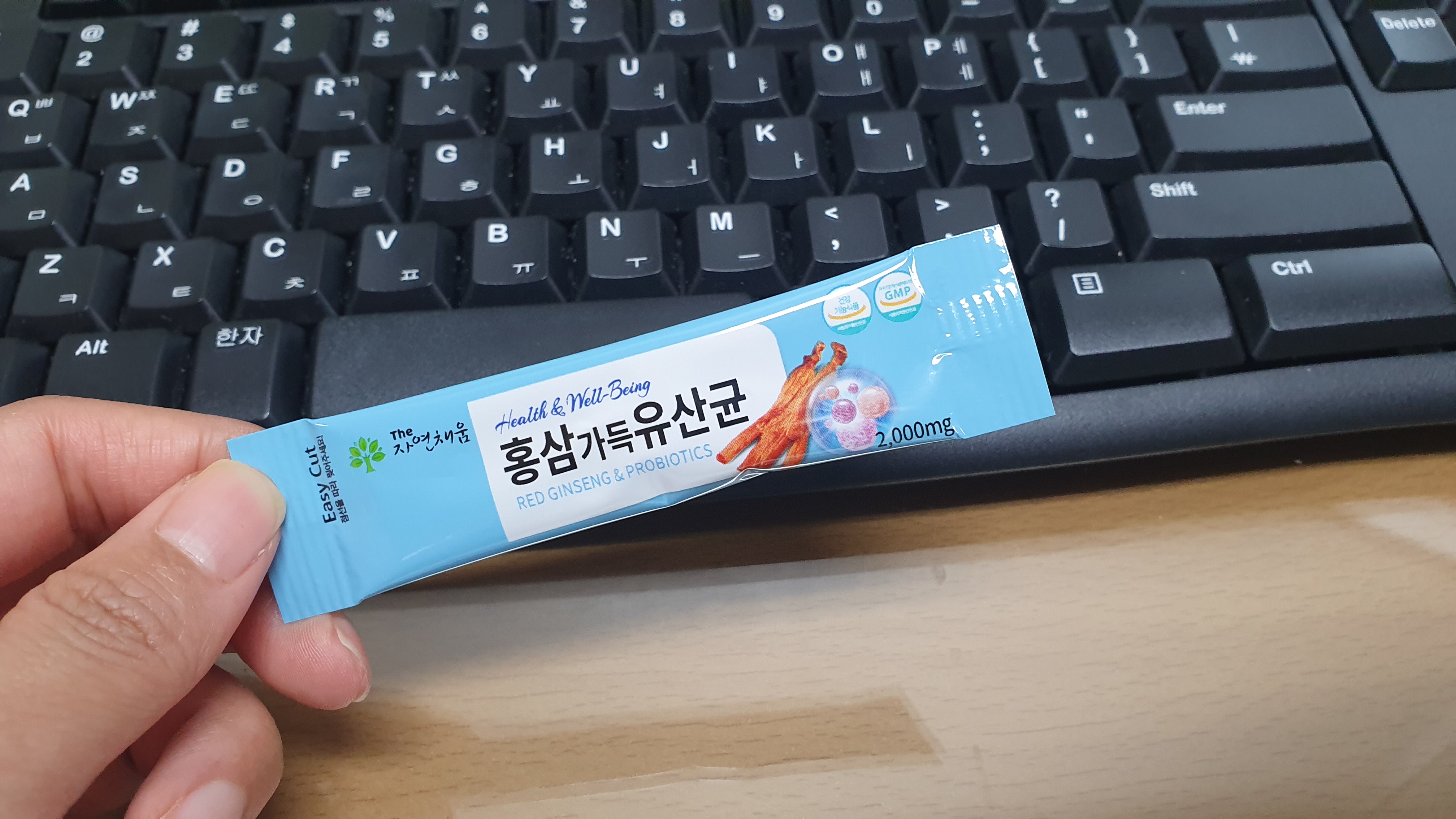 처음에는 홍삼이 함유되어서 홍삼향이 너무 강해 거부감이 들진 않을지 걱정되었으나 막상 먹어보니 향이 너무 강하지 않고 은은해서 꽤 먹을만했다. 맛 역시 홍삼진액 나 청에 비해 유산균이 섞여있어서 그런지 부드럽게 홍삼맛이 어우러져서 부담 없이 먹을 수 있는 맛이었다. the자연 채움의 홍삼 가득 유산균은 풍기인삼농협의 6년 근 홍삼분말과 17종의 유산균 프로바이오틱스를 배합하여 만든 2중 기능성 건강 기능식품으로 장 건강뿐만 아니라 홍삼의 효능까지 함께 얻을 수 있다.