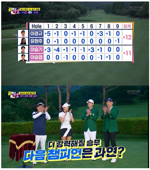 유현주는 나인홀 보기1개, 버디 1개, 파 7개를 하며 이븐파를 기록했으나 이경규가 12 오버를 치면서 이승기와 이승엽팀에게 1타 차이로 패했다. 이승엽 역시 버디 2개와 보기 1개, 파 6개를 해내며 1 언더를 쳐 유현주 프로를 한 타 차로 이기며 엄청난 골프 실력을 선보였다.
