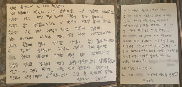 이은해와 조현수는 검찰 수사를 받던 시기인 지난해 3월 경북 예천군 삼강주막으로 여행을 갔는데요, 그곳에서 서로에게 333일 뒤 받아보는 '느린 우체통'에 편지를 썼습니다. 이은해는 편지에 "(333일 뒤에) 우린 그때 어떻게 지내고 있을지 궁금하다. 나 때문에 온갖 풍파 다 겪었는데 함께해 줘서 고맙다. 그때는 별일 없이 평범하게만 잘 살고 있었으면 좋겠다"라고 적었고 조현수는 "우린 지금 어떤 생활을 하고 있지? 아직 살고 있다면 큰 재앙은 없었다는 거겠지?"라고 썼습니다.
