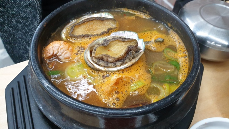 제주 공항에서 5km 떨어진 해안도로에 위치해있다. 식사메뉴로는 전복 뚝배기, 보말 뚝배기, 성게 미역국 회덮밥, 전복죽, 갈치정식 등이 있다. 전체적으로 반찬이 정갈하고 간도 적절한 편이다. 특히 전복죽이 여지껏 먹어본 곳에 비해 색상이 매우 진한 편이었다. 진한 색깔만큼이나 맛도 진한 것이 특징. 진한 전복죽과 전복 뚝배기의 구수한 맛의 조화가 훌륭하다. 가성비 맛집으로 추천!