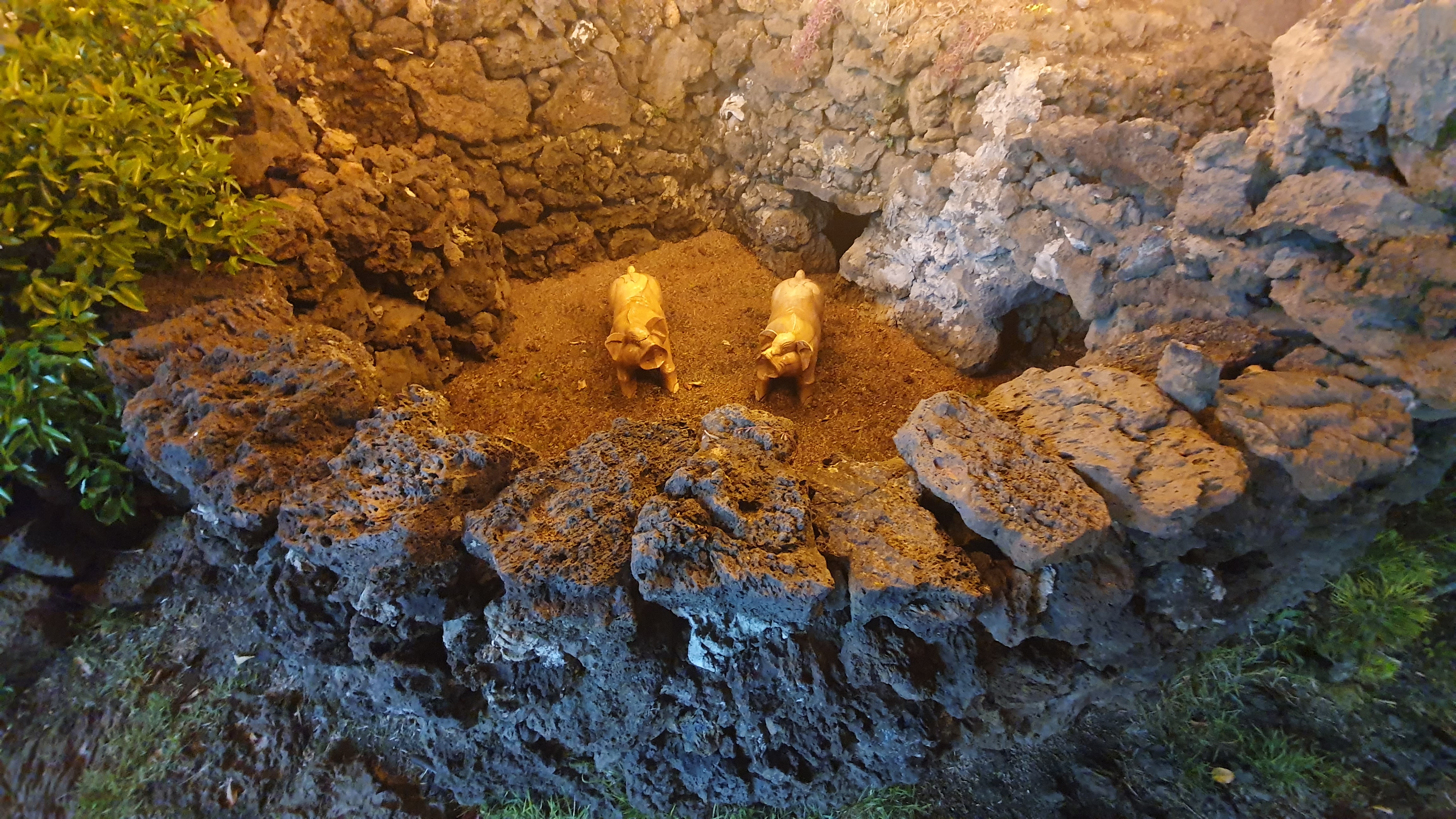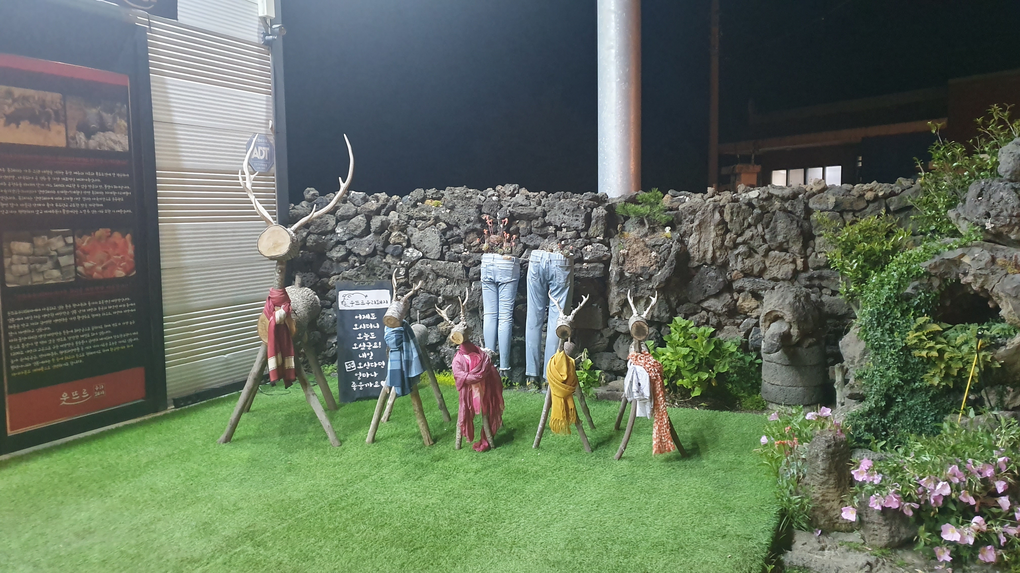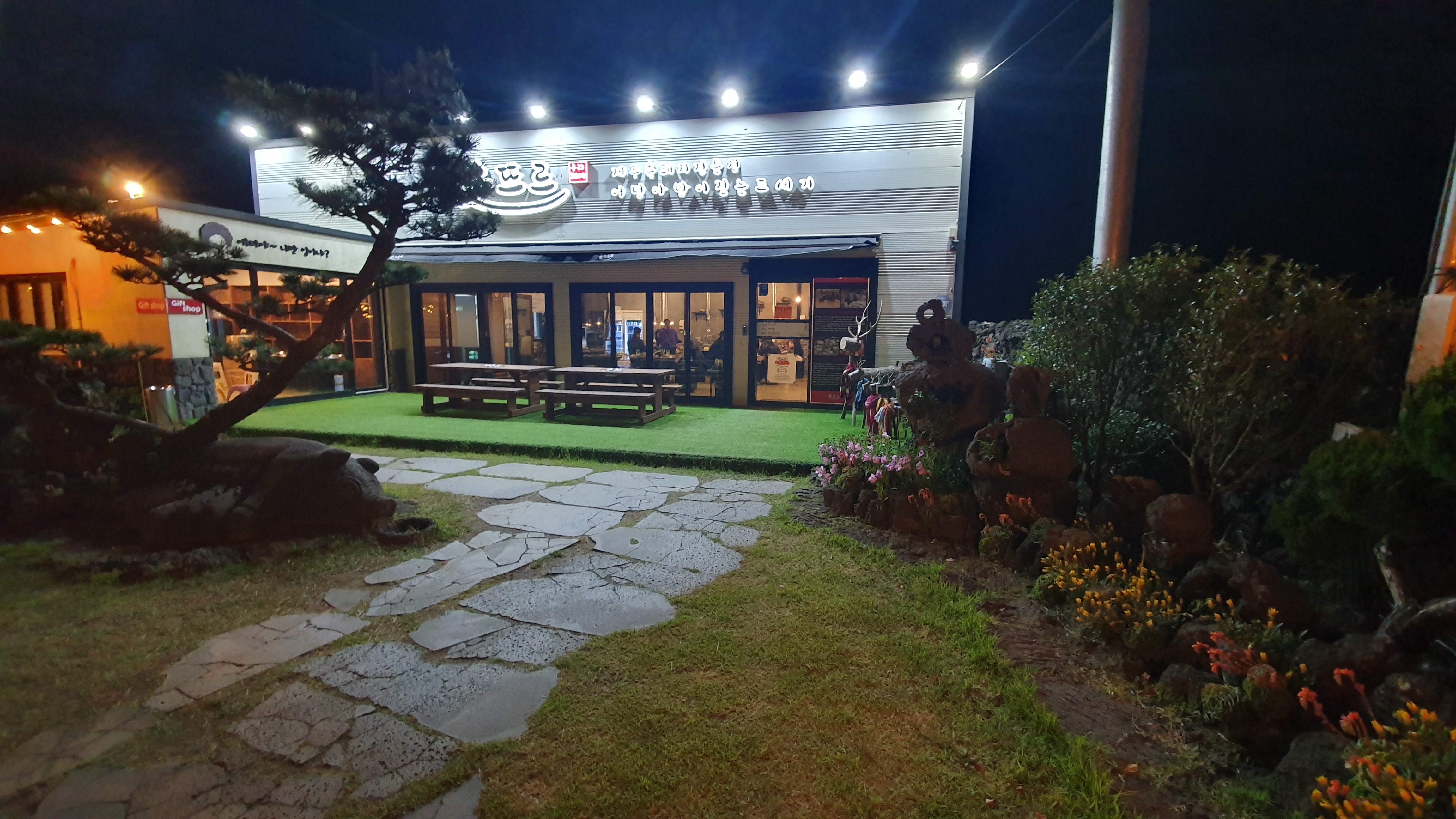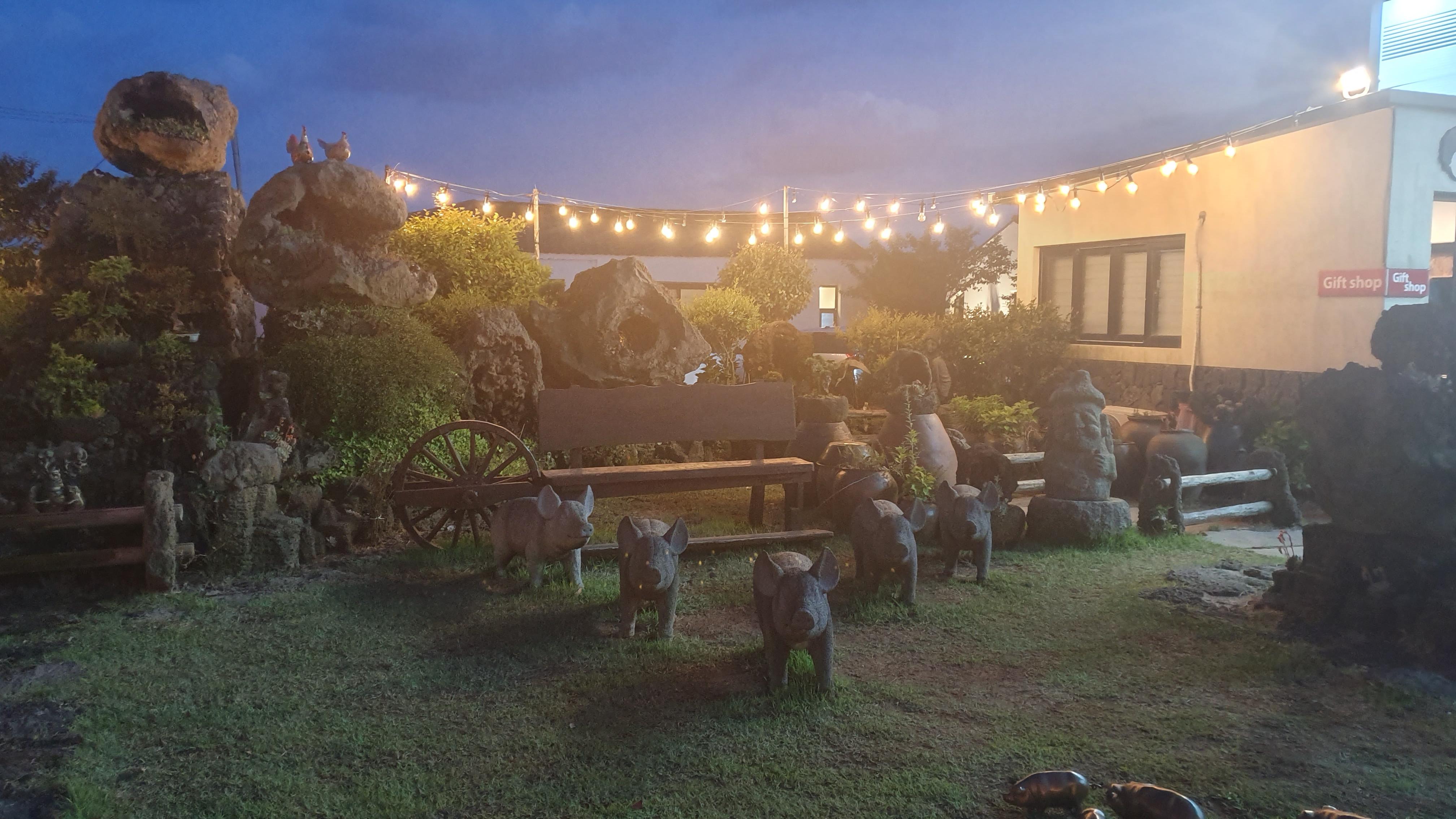 제주 도민이 추천하는 흑돼지 찐 맛집으로 대기가 꽤 있는 편이다. 대기가 지루하지 않도록 가게 왼편 대기실에 미니오락실을 꾸며두었다. 뿐만 아니라 가게 앞마당에 돼지 조형물이나 똥돼지 키우는 모습 등을 본뜬 조형물들로 구경거리가 가득해서 기다리는 동안 지루할 틈이 없었다.
