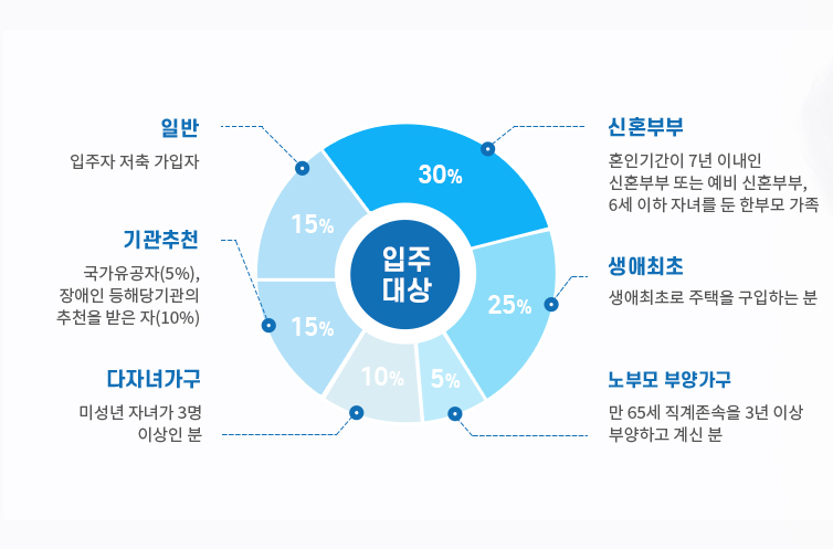 무주택세대와 청약통장은 필수이며 해당지역에 거주해야 한다. 사전청약을 신청하기 위해서는 신청자와 배우자, 직계존속이나 직계비속 모두 무주택자여야 한다. 또한 주택청약종합저축 가입자여야 청약 대상에 포함된다.
