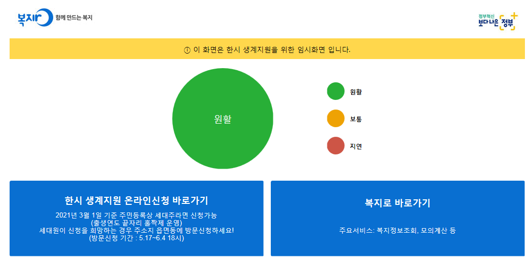 ①한시 생계지원 신청서(온라인: 신청서 제출로 갈음)