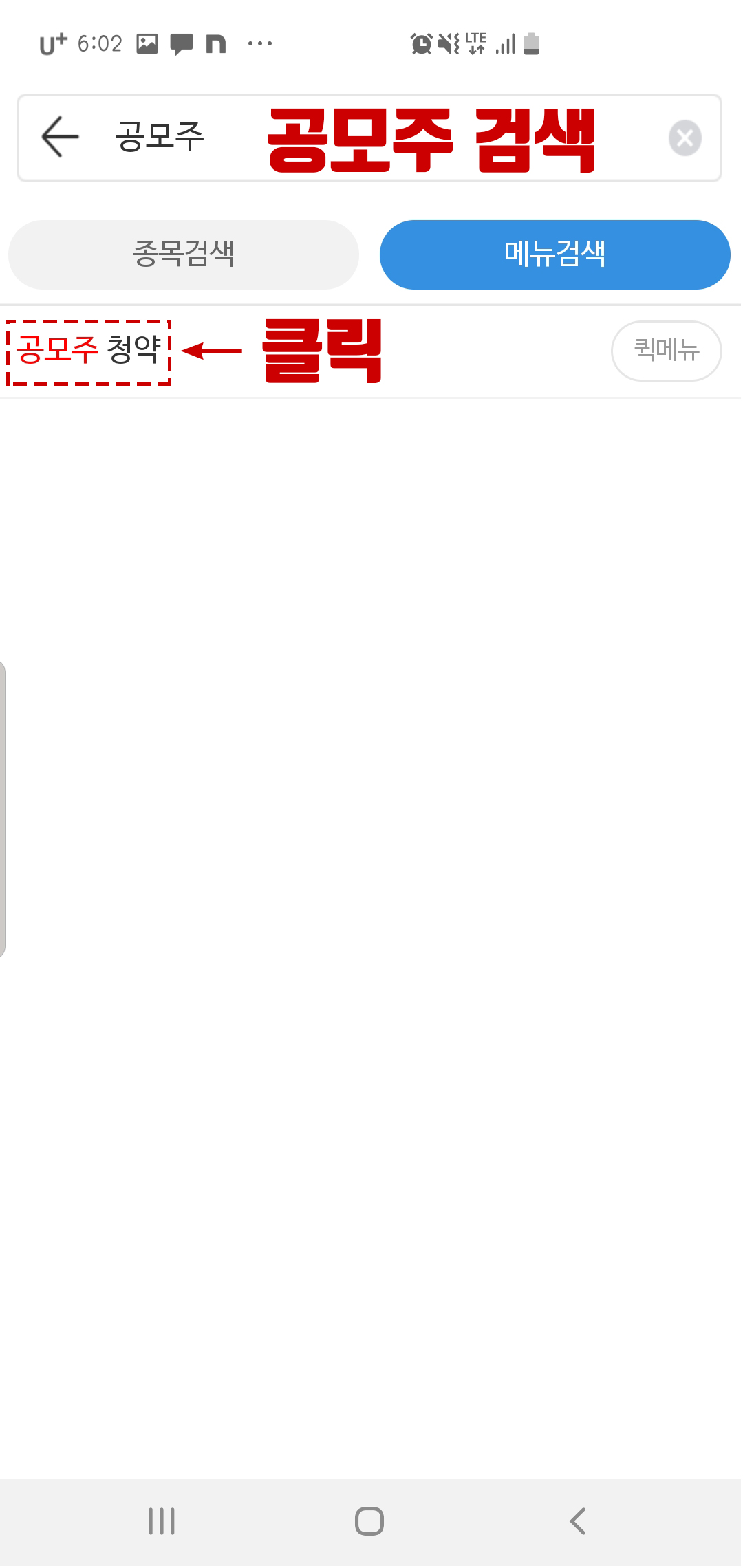 2. 상단'돋보기'를 누르고 '메뉴 검색에 공모주 검색