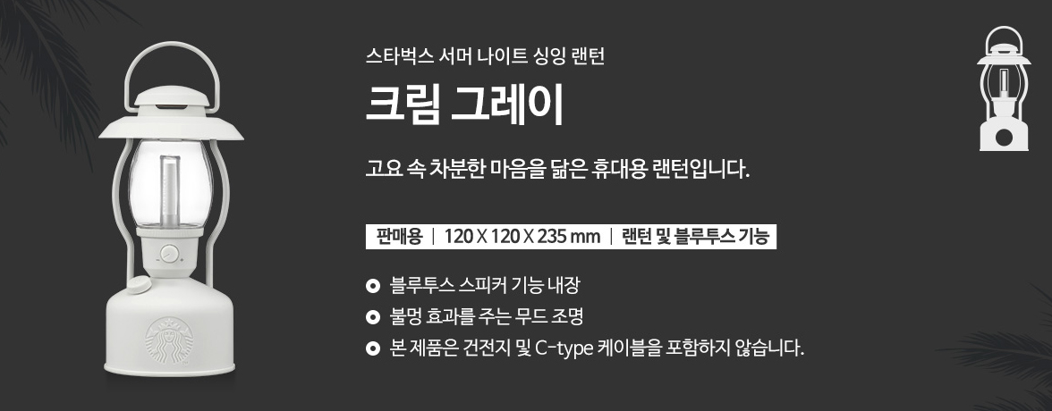 마찬가지로 스타벅스 프리퀀시 제품 서머 나이트 싱잉 랜턴 역시 캔디핑크, 민트 블루, 콜드블랙 3가지 색상 외에 별도로 크림 그레이 색상만 ssg닷컴에서 구매가 가능하다.