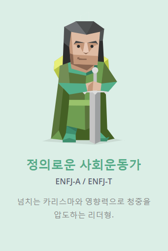 상냥한 성격의 이타주의자로 건강하고 밝은 사회 건설에 앞장서는 낭만형