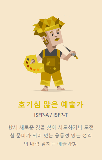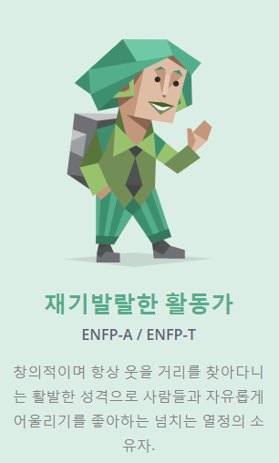 본인이 어떤 성향인지 궁금한 분들은 아래 링크를 통해 mbti검사를 받아보는 것도 좋을 것 같다.