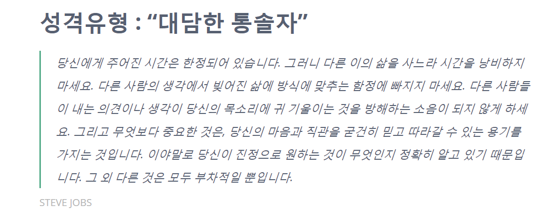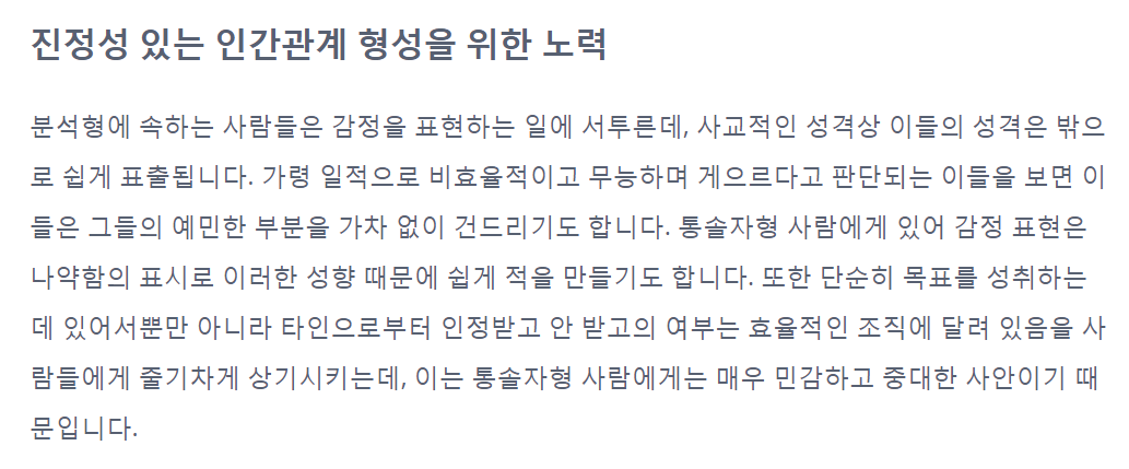 검사 결과는 상당히 디테일하게 나온다. (ex. 대담한 통솔자)
